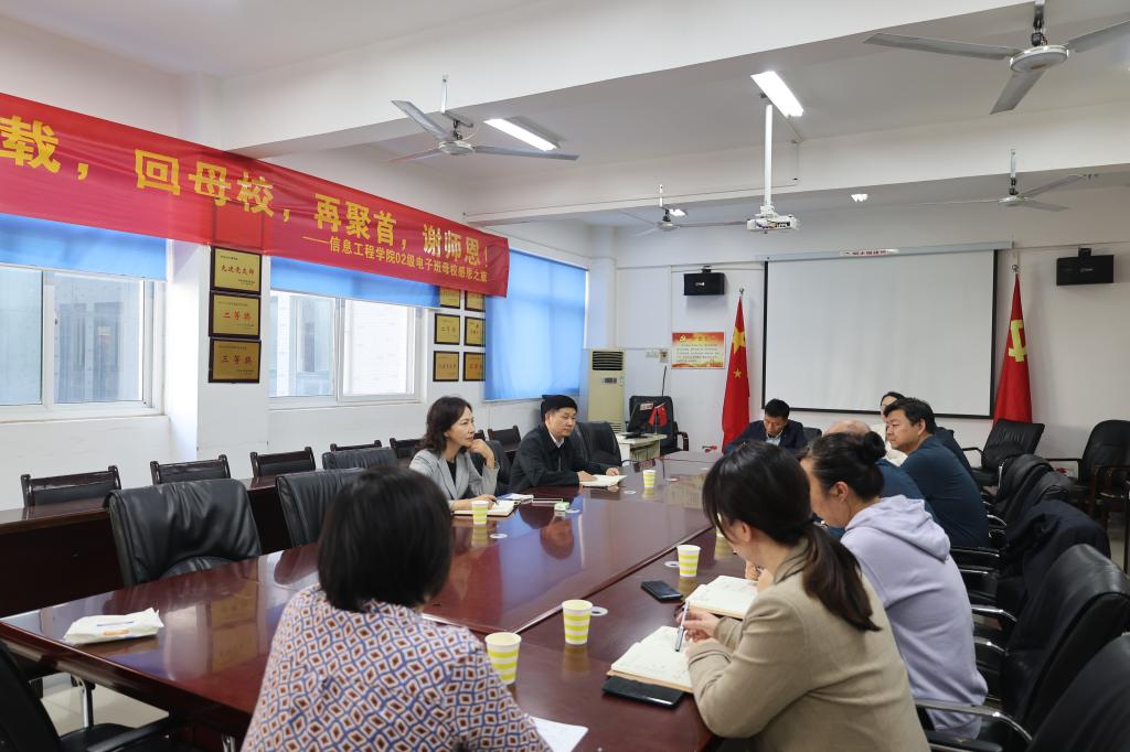 本站讯 10月31日上午,校党委书记谭贞、校长王德如到信息工程学院进行实地考察和调研指导,党政办主任陈岩和教务处处长杨桦等陪同,学院领导班子全体成员参加了调研座谈会。
