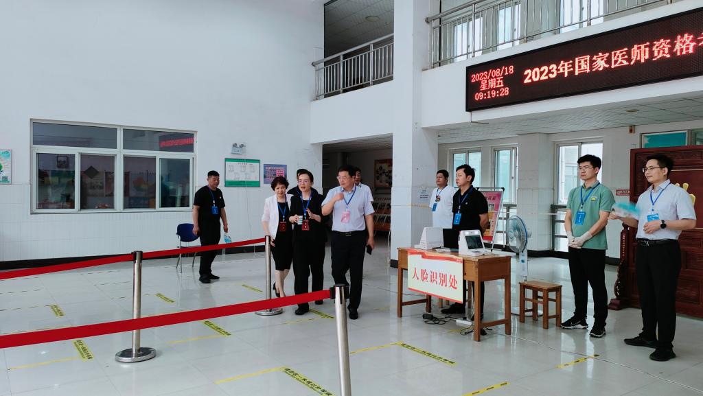 8月18日,副市长徐超文,市卫生健委党组书记、主任刘建宏,副主任于建伟等对我校考点的工作进行了巡视和督查,校工会主席成芳等陪同巡视。我校考点工作组织严密、管理规范、高效有序;考务及监考人员精益求精、仔细认真的工作态度;硬件设施配置及考区安保高度到位的措施,得到了徐副市长、市卫健委等巡视人员的一致好评。