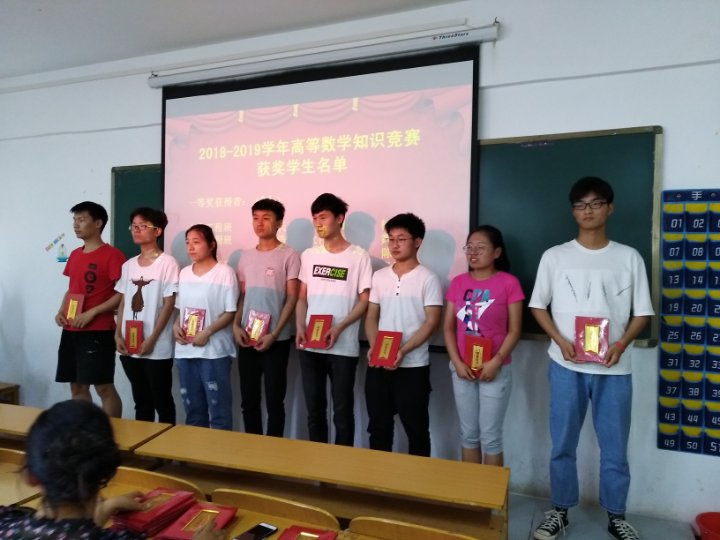 本站讯 5月23日下午,我校在3号楼202教室隆重召开2018年度全国大学生数学建模竞赛和我校2018—2019学年高等数学知识竞赛的颁奖大会。颁奖大会由数学教研部主任白水周同志主持,数学教研部全体教师参加了颁奖大会。