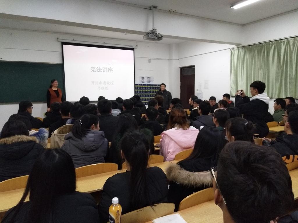 本站讯 12月12日下午,为进一步加大对《中华人民共和国宪法》的宣传力度,弘扬宪法精神,维护宪法权威,信息工程学院邀请中共开封市委党校法学教研室副教授马秋莲老师,为学院师生开展宪法知识讲座。