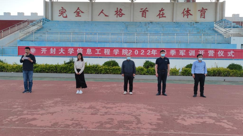 本站讯 在全国青年深入学习习近平总书记在中国人民大学与师生座谈讲话精神之际,按照学校开展军训工作的要求,五四青年节晚上7点,信息工程学院在学校田径场举行2022年春季军训开营仪式。学院党总支书记袁震、院长张新成、党总支副书记高剑南出席了开营仪式。2020级辅导员王沐昕及2020级全体参训同学参加了开营仪式。仪式由学院团总支书记贺钰主持。