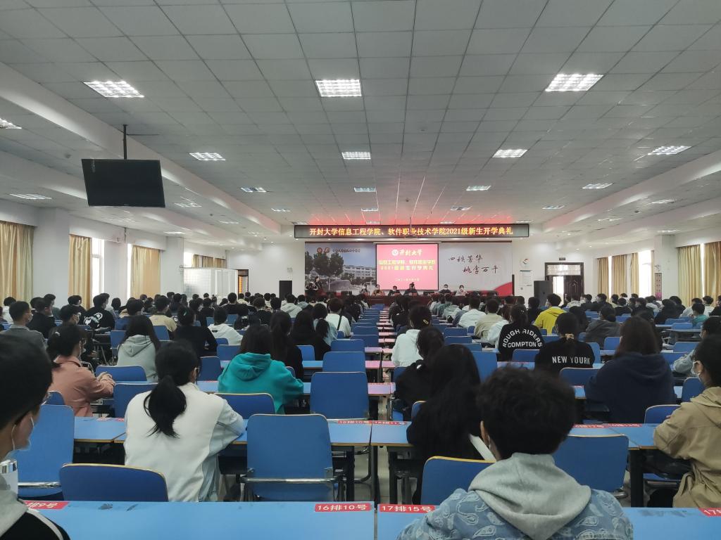 本站讯 2021年10月10日上午,信息工程学院、软件职业技术学院2021级新生开学典礼采取主分会场线上直播的形式隆重举行。
