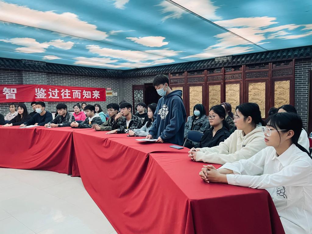 与会的同学们也纷纷谈了自己自入校以来在团学活动中的收获和成长。“红旗团支部”代表、信息工学院2019级计算机网络技术班邓鑫垚同学表示,青年学子有远大理想和坚定信念,是一个国家、一个民族无坚不摧的前进动力。青年志存高远,就能激发奋进潜力,青春岁月就不会像无舵之舟漂泊不定。奋斗是青春最亮丽的底色。今天,我们的生活条件好了,但奋斗精神一点都不能少,中国青年永久奋斗的好传统一点都不能丢。新时代中国青年要树立对马克思主义的信仰、对中国特色社会主义的信念、对中华民族伟大复兴中国梦的信心,到人民群众中去,到新时代新天地中去,让理想信念在创业奋斗中升华,让青春在创新创造中闪光。“优秀新媒体团队”代表、人文学院2019级新闻1班王家栋同学表示一名团属新媒体团队的成员,在今后会更加努力的发挥新媒体在青年中的宣传优势,用同学们喜闻乐见的形式,讲好党史故事,引导青年团员传承发扬五四精神。“优秀志愿服务团队代表”、2019级服装2班闫鹏宇同学讲述了自己在社会实践和志愿服务活动中的收获和成长,并号召同学们积极参与志愿服务和社会实践活动,不断的在实践过程中增长知识才干、练就过硬本领,在服务中感受青春使命、彰显青春价值。