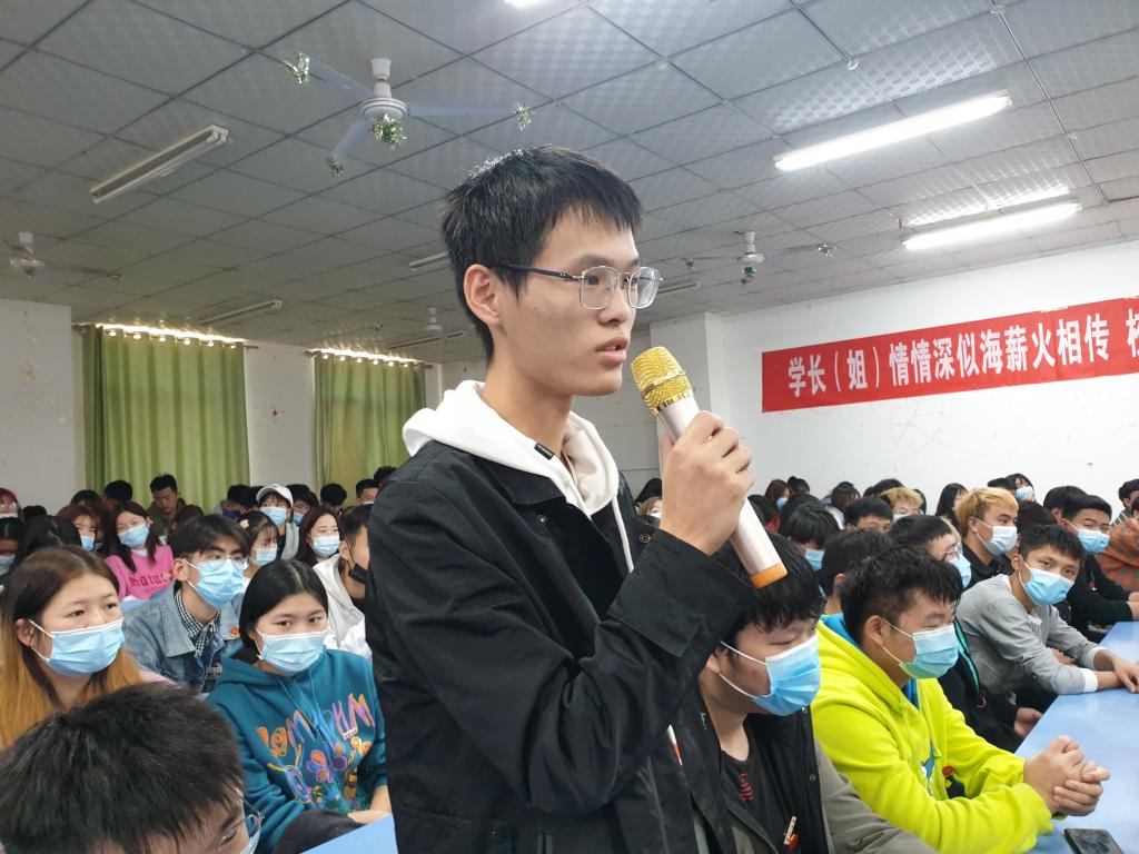 校友们首先就自己的学习经历、工作经验进行了分享,并从专业学习、就业方向及专升本学历深造等方面做了深入的交流和指导。台同学积极提问,台上的校友们热心答疑,自由问答环节论坛的气氛推向高潮。最后,校友们将手中的鲜花赠与学弟学妹们,达到了“分享心得助力成长薪火相传”的目标。