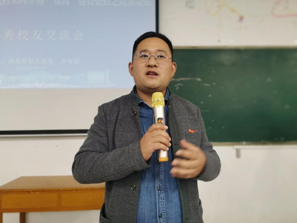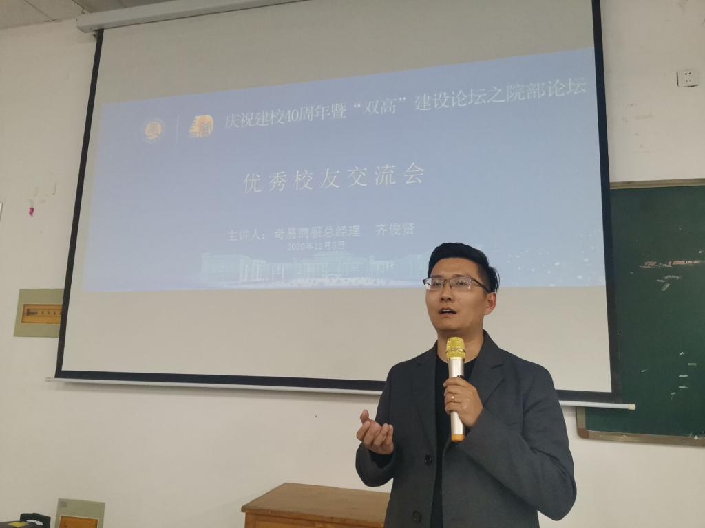 本站讯 为庆祝bat365在线官方网站建校40周年,11月5日下午,信息工程学院邀请优秀毕业生、现奇易商贸总经理奇俊贤为同学们现场交流。交流会在15#102教室举办,教科研主任付红杰老师主持,200余名在校生参加。