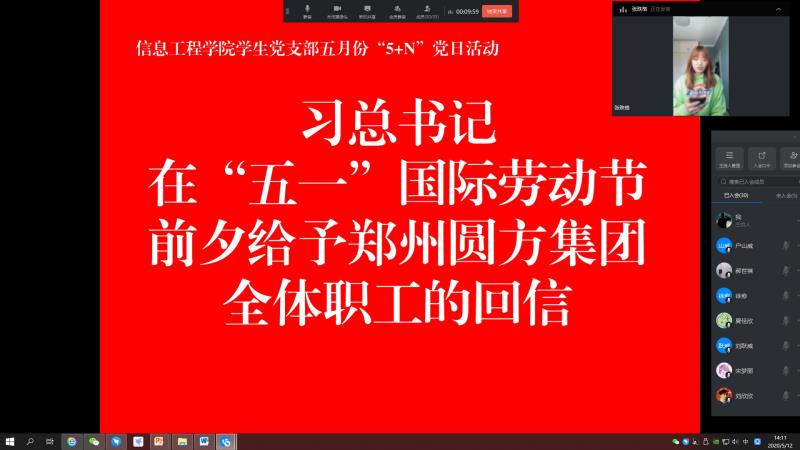 本站讯 在全国各族青年积极学习习近平总书记在“五一劳动节前夕给郑州圆方集团全体员工的回信”和“在五四青年节前夕给予全国各族青年寄语”之际,时值“5·12”汶川大地震十二周年和全国防灾减灾宣传周。结合信息工程学院“把灾难当教材 读懂伟大祖国 与祖国共成长”系列活动,信息工程学院学生党支部开展了“牢记习近平总书记寄语嘱托 磨砺青春建功新时代”5+N党日活动。