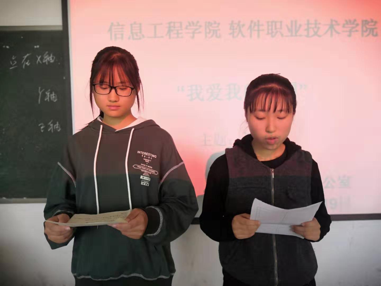 本站讯 为了积极倡导和培育热爱祖国、尊敬师长、关心同学、热心公益的优良校风,让讲文明、树新风蔚然成风,形成蓬勃向上、文明和谐的校园文化,10月24日下午,信息工程学院在3号楼309教室正式举办了以“我爱我的祖国”为主题的读书会活动。