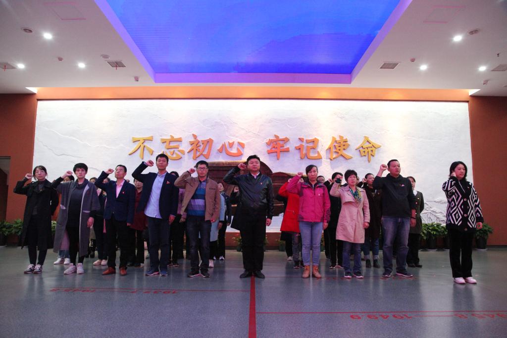 学习参观结束后,全体党员来到宣誓厅,聆听了《国际歌》,共唱《国歌》,在教工党支部书记王娟同志的领誓下重温了入党誓词,再次向党旗庄严宣誓,并在《共产党员承诺书》上签字。会后全体党员对展馆周边的卫生进行了一次大扫除并缴纳了党费。