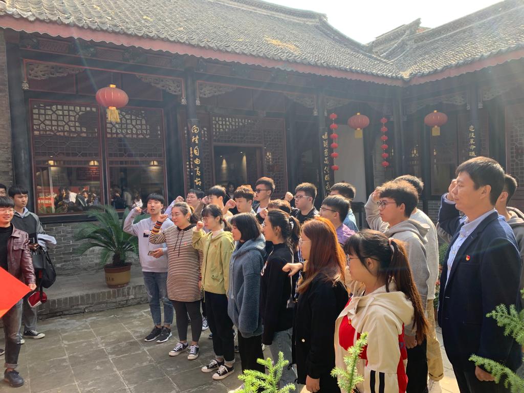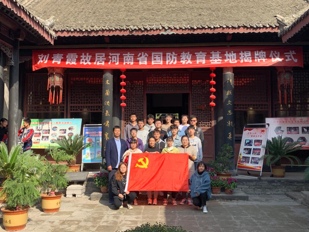 本站讯 10月26日上午,在刘青霞故居刚刚挂牌为河南省国防教育基地之际,信息工程学院、软件职业技术学院学生党支部全体成员在辅导员贺钰老师的带下前往刘青霞故居开展5+N党日活动。信息工程学院分党校第11期发展对象培训班和第60期积极分子培训班全体学员参加了活动。