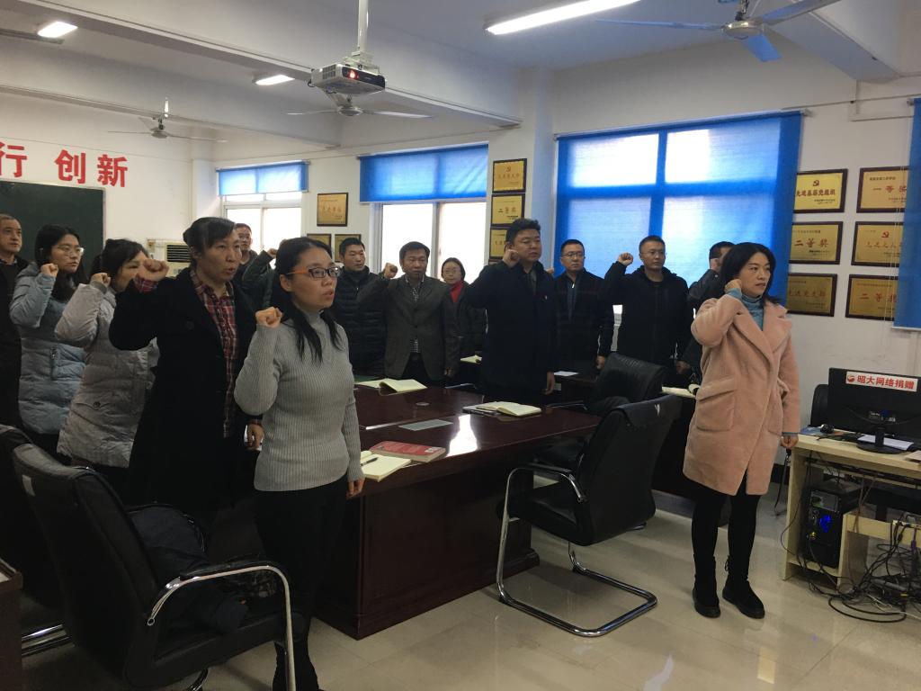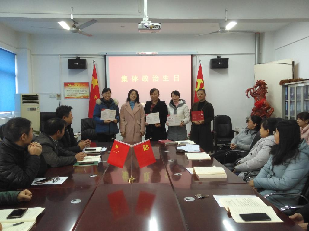 党员“初心使命四问”主题党日活动在支部书记王娟的领誓下,在同志们掷地有声的宣誓中拉开序幕。同志们面对党旗,举起右拳,重温入党誓词,找初心问使命。在经典诵读环节,由王沐昕、李雪、徐慧玲和曹曼四位同志为大家诵读了《习近平关于“不忘初心牢记使命”重要论述选编》中的经典片段,让大家在经典中筑牢信仰之基、补足精神之钙、把稳思想之舵。之后,大家现场缴纳了党费,这一活动也让全体党员更加深刻地认识到按期足额交纳党费是党员应尽的责任和义务,是检验一个党员是否合格的最基本标准。十二月份,教工党支部共有五位同志过集体生日,他们每人都收到了来自党组织送出的特殊的生日贺卡,余平洋同志和李响同志也代表过政治生日的老师们发表了“生日感言”,她们都说,这个生日让她们感受到党组织的关心和温暖,并要在以后的工作和生活中时刻严格要求自己,在各自的岗位上充分发挥好先锋模范带头作用。第二批“不忘初心、牢记使命”主题教育已接近尾声,每位党员都结合学习情况和自身实际,认真填写了《党员初心使命四问表》,并在会上谈认识体会、找差距不足、提整改举措。最后,由总支副书记高剑高同志宣读了《关于走进学生宿舍开展“百万工程”的通知》,并给每位党员老师分配了学生宿舍,建立了联系制度。他要求老师们要定期深入联系宿舍,了解学生的思想动态,及时进行教育引导,帮助学生健康成长。此项工作旨在打通“三全育人”最后一公里,更好地搭建师生交流的桥梁。
