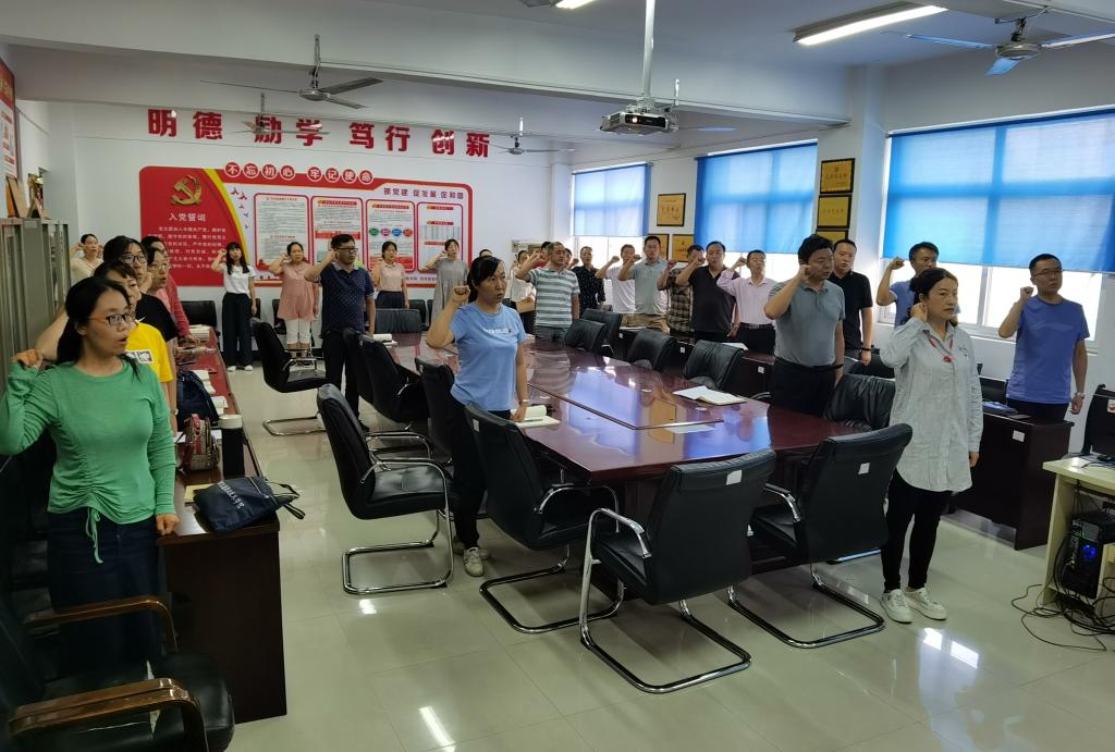 活动中,全体党员重温了入党誓词、学习了习近平总书记教师节重要寄语精神、过集体政治生日、集中交纳了党费、对党员积分情况进行了通报、完成了经典诵读、布置本月志愿者活动。