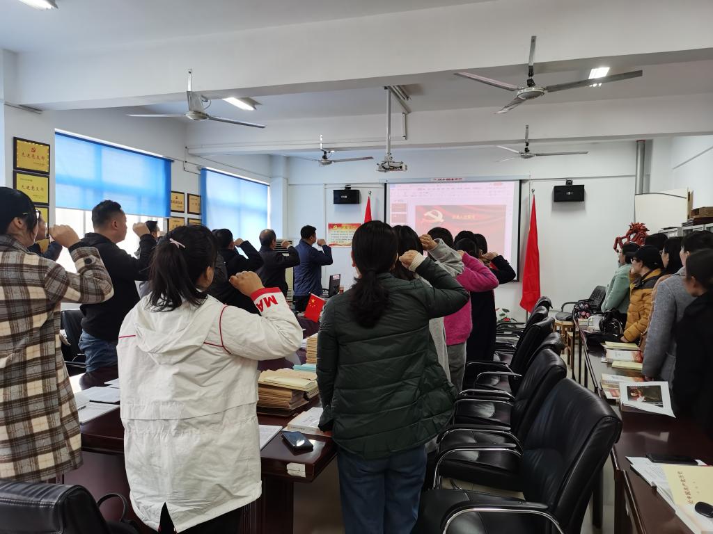 首先,党员同志们佩戴党员徽章,高举右拳,在王娟书记的领誓下,铿锵有力地重温入党誓词。按照活动议程,过政治生日,自觉缴纳3月份党费,并通报党员2月份积分。