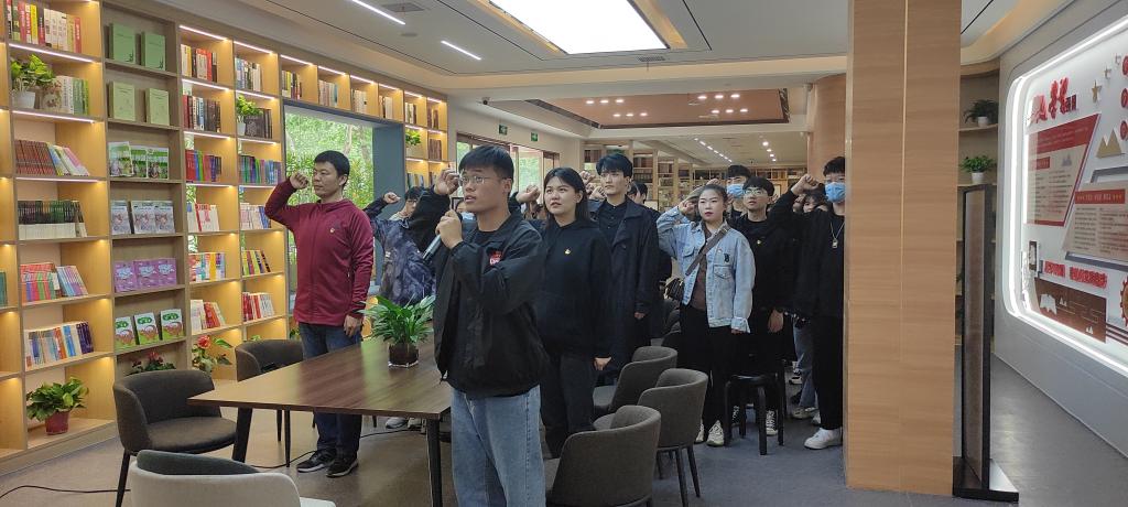 在顺河回族区刚刚建成的党建教育基地“初心家园”党建服务中心。学生党支部的青年党员们在庄严的党旗前重温了入党誓词,观看了党史教育纪录片《大党赤子之心》,学习了《中国共产党党史》(节选章节),各位青年党员也对近期自身表现进行了自评。活动当天恰逢“世界读书日”大家还在工作人员的带领下参观了“初心家园”中的“初心书屋”并认真阅览学习了书屋中的党史和党建书籍,进一步充实自己的党史理论知识。