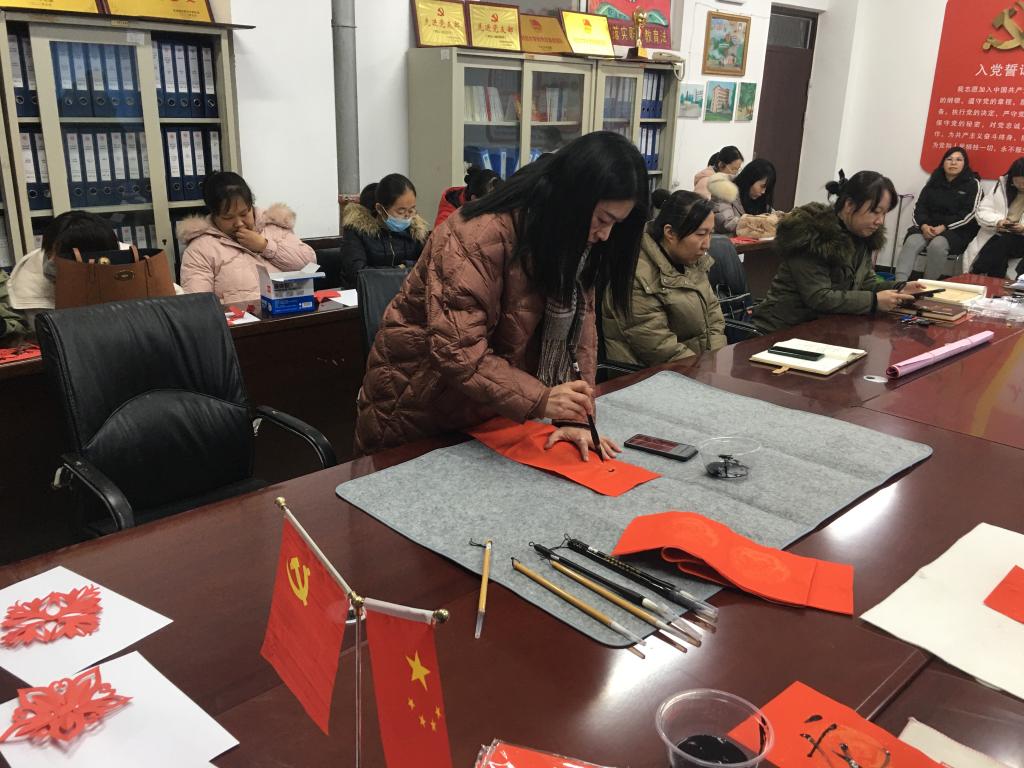 最后一个环节为“写春联,剪窗花,迎新春”。整个会场热闹非凡,一边是陈丽老师、王娟老师和梁宏老师尽情挥毫泼墨,一副副妙笔成双的春联展现在眼前。另一边,随着剪刀和红纸在老师们的手中灵活翻飞,造型各异的窗花、喜字就跃然纸上,大家无不拍手称赞。