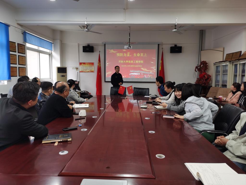 本站讯 4月11日下午,信息工程学院在3#312会议室开展2024年上半年消防安全知识培训,邀请消防教员杨耀昌进行《预防为主 生命至上》的消防安全讲座,旨在为加强和提高教职工的消防安全意识。