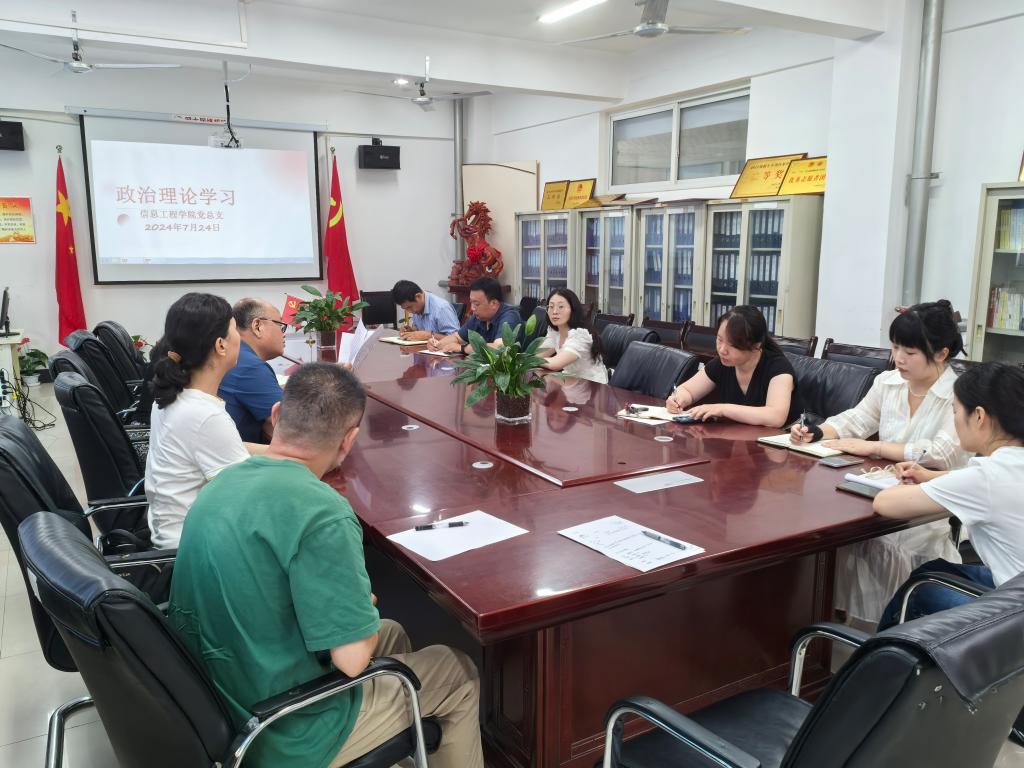 本站讯 7月24日上午,信息工程学院(软件职业技术学院)党总支在学院会议室召开党总支委员会,深入学习党的二十届三中全会精神。会议由党总支书记武莹主持。