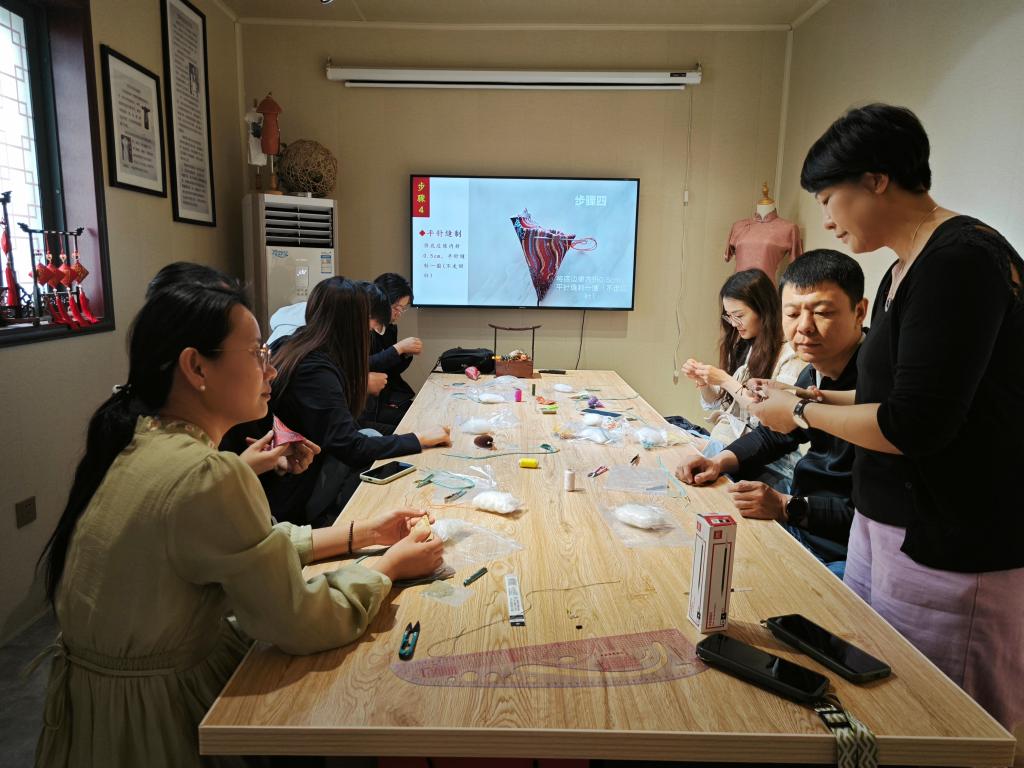 五大祥刘氏传统旗袍制作技艺第四代传承人刘秋红老师为大家讲解了旗袍的历史渊源、派系、种类、工序,讲授了五大祥香囊的特点,并指导老师们制作了特色香囊。在制作过程中,老师们结合缝制过程,交流了在工作中要以“穿针引线见真章的耐心”,精准把握00后青年学子的思想动态;以“走针布线的巧劲”,把握处理学生问题时“刚柔并济的艺术”;以“香料配伍蕴乾坤的细心”,调配好教育引导青年学子的“理论之药”与“情感之方”。