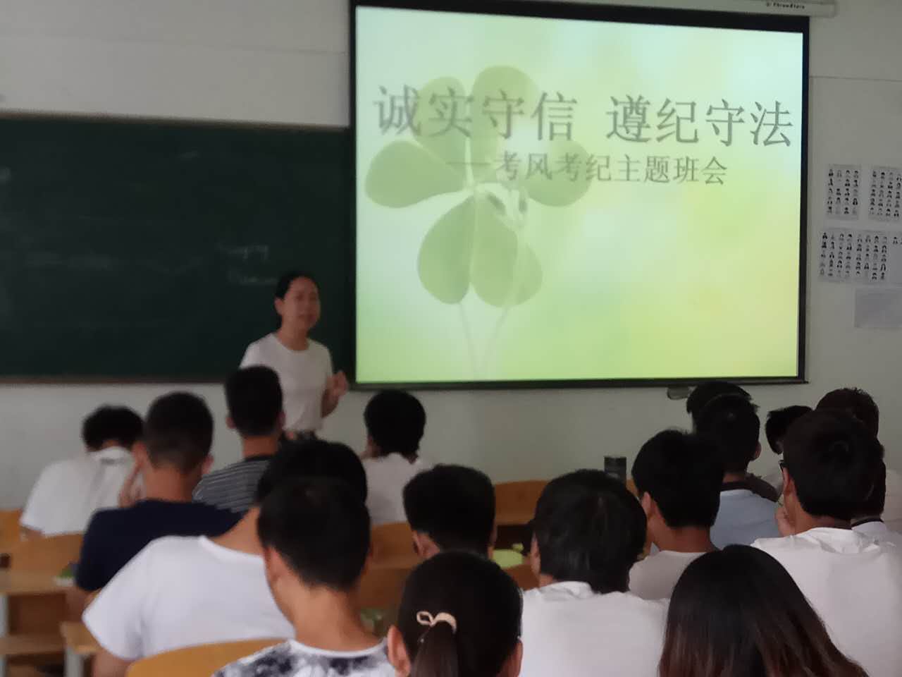 本站讯 期末将近,为营造良好考试氛围,争得优异考试成绩,同时在暑假假期即将来临时对学生进行必要的安全教育,16级应用专业三个班分别于6月13日中午12点、6月14日上午在401、402教室召开了考风考纪暨假期安全教育主题班会,会议由辅导员张娜娜老师主持。