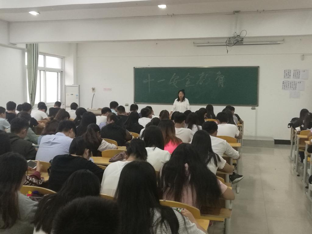 本站讯 9月25日下午,方继玲老师于3#401教室,为我院大三年级在校生召开以“平平安安回家去,开开心心过双节”为主题的安全教育班会。