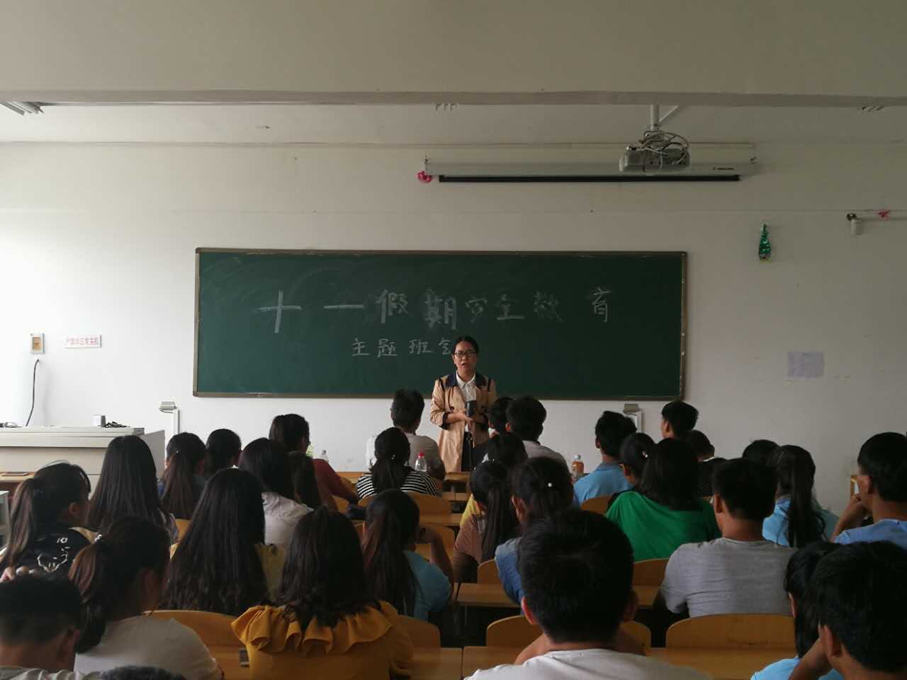 本站讯 信息工程学院17级全体学生于9月29日下午3点30分在3号楼402、403、406教室分别召开了军训工作总结及假期安全教育主题班会,班会由辅导员张娜娜老师主持。