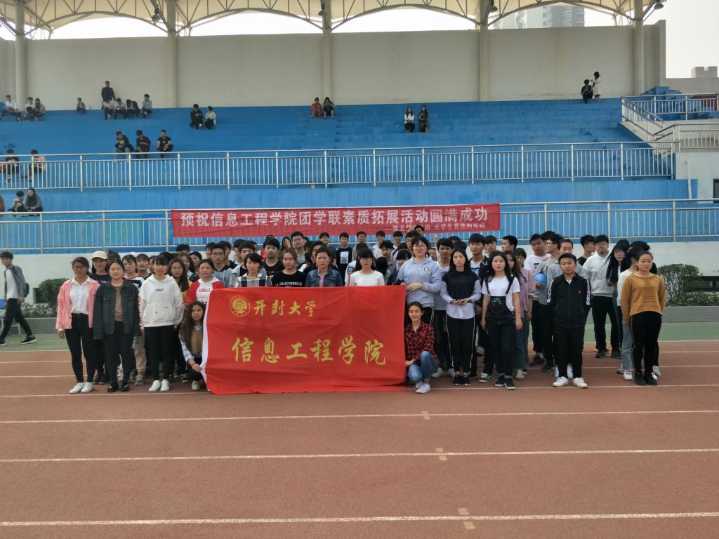 本站讯 为了增强我院学生干部的的凝聚力和团结力,消除成员之间的生疏感,为以后积极有效的开展各项工作奠定基础,信息工程学院于2018年3月31号在运动场举班学生干部素质拓展活动。团学联全体学生干部和各部门干事参加了这次素质拓展活动。