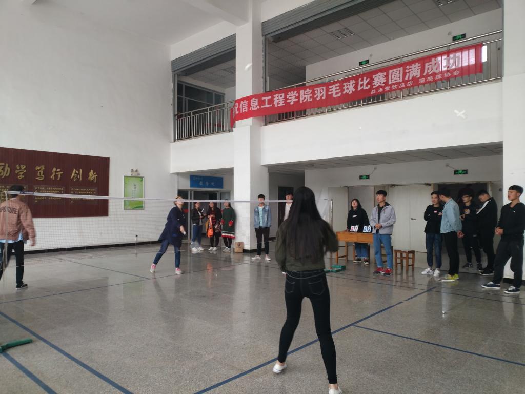 本站讯 为响应大学生“走出宿舍,走向操场”的号召。4月14日,信息工程学院联合bat365在线官方网站羽毛球协会在15号楼举办了以羽毛球比赛。本次比赛以“展现个人风采,体现运动魅力”为主题,共48位羽毛球爱好者参加了比赛。