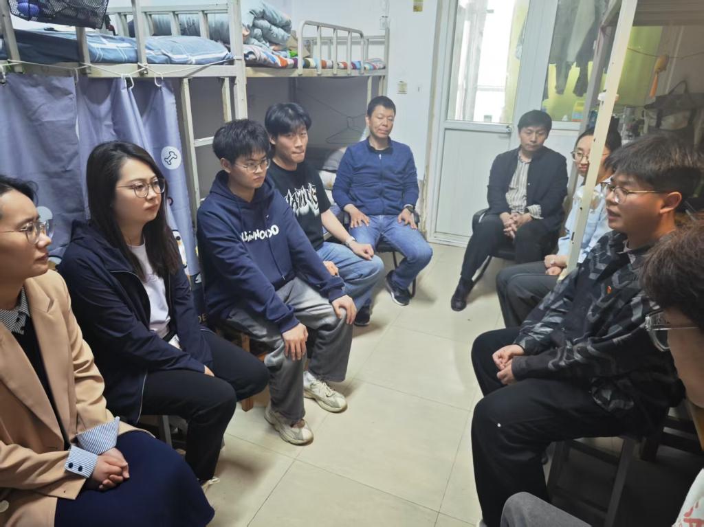 本站讯 为深入贯彻落实立德树人根本任务,推动思政教育全方位、多层次融入青年学子的日常生活,搭建起师生间更为紧密的沟通桥梁。4月10日,信息工程学院与马克思主义学院创新育人,联合开展思政教育进宿舍活动。马克思主义学院党支部书记李鹏、信息工程学院团总支书记贺钰及辅导员代表雷文杰、李洁参加此次活动。