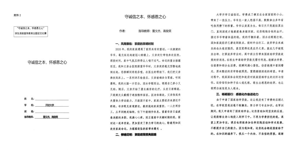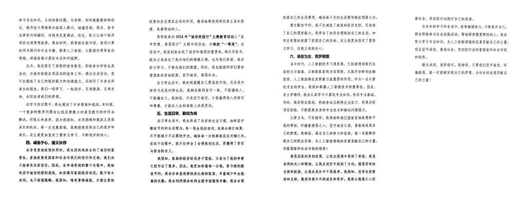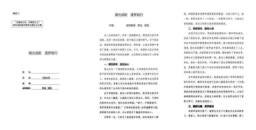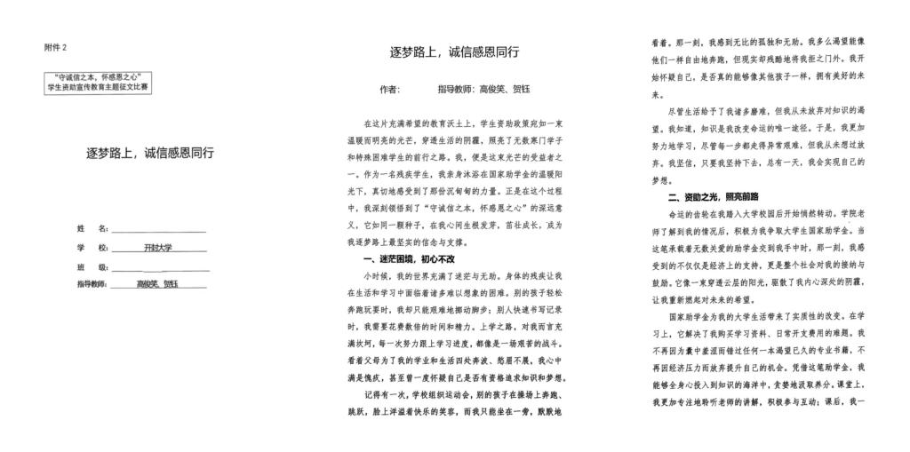 此次活动的成功举办在学院营造了崇尚诚信的良好氛围,让诚信观念深入人心,进一步发挥了“资助育人”在“立德树人”根本任务中的关键作用。今后,学院将继续探索、创新诚信教育方式,推动学生资助与诚信教育的深度融合,助力学生全面成长,为培养有担当、讲诚信的“新质青年”不懈努力。 (附部分优秀作品)