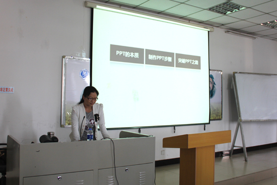 本次培训由我校旅游学院段淑敏老师主讲,段淑敏老师从PPT的本质、制作步骤、突破PPT之路三个方面详细介绍了PPT课件的制作与软件使用技巧,给在座的青年教师带来了很多新的理念和启示,大家都感到受益匪浅。此次培训提高了我校青年教师多媒体课件制作水平和课堂教学水平。