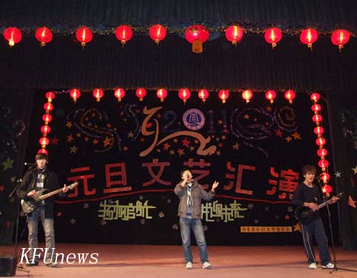 2010年12月30日晚7点,我校“扬帆起航,共迎未来”2011年元旦文艺汇演在金松大礼堂隆重举行。副校长万是明,学生工作部部长陈岩,团委书记樊玉霞,副书记陈嘉慧、艺术教研室负责人、各院党总支副书记、团总支书记及千余名师生欢聚一堂共同观看了本场晚会。