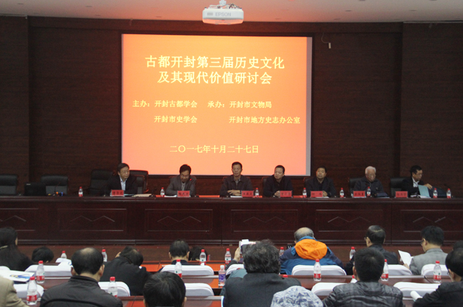 本站讯 10月27日上午,由开封古都学会、开封史学会主办的古都开封第三届历史文化及其现代价值研讨会在我校行政组一楼报告厅召开。市政府副秘书长王亚文,开封古都学会第五届理事会会长徐伯勇,河南大学博士生导师、教授、开封市史学会会长程民生,开封市地方史志办公室主任曹景宪、副主任张雁冰和我校副校长曾小平出席了会议,来自开封文化部门的专家学者,河南大学、开封文化艺术职业学院及我校艺术设计学院师生共200余人参加会议。会议由市文物局副书记何伟主持。