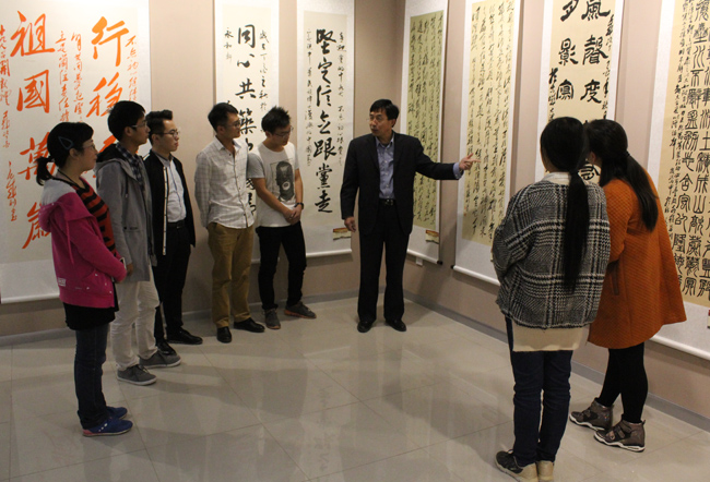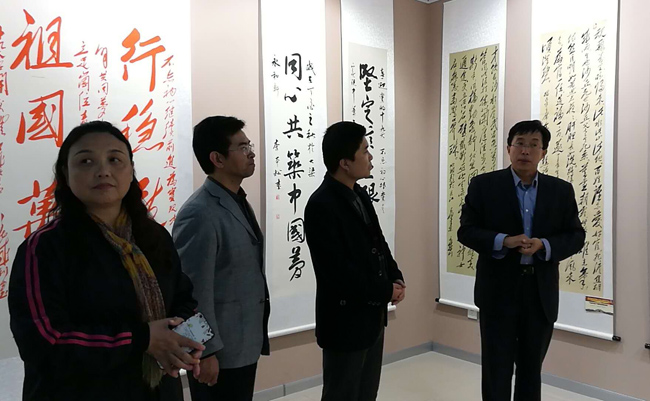 开封市书法家协会领导及我校领导参观书画作品