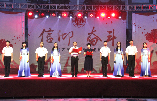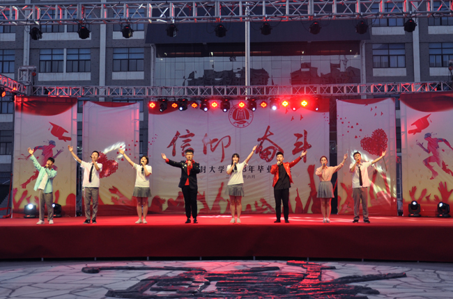 本站讯 6月11日晚,我校在大观广场举行“信仰 奋斗”2018年欢送毕业生晚会。我校领导陈灿、储建新、万是明、赵辉、范金梅、成芳、曾小平、李治出席晚会,相关职能部门、各院部负责人和各院部师生代表3500余人参加并观看了晚会。