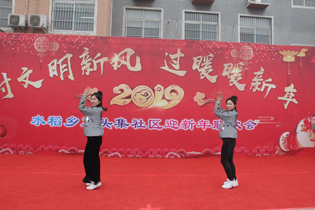 1月30日上午,在马头集社区的广场上,我校党员志愿者们与社区艺术团的群众们一起举行了“树文明新风,过暖暖新年”暨水稻乡马头集社区迎新年联欢会。我校党员志愿者们为群众们奉献了《美丽的神话》、《C哩C哩》、《等待》等。精彩的歌舞,获得了群众们的广泛好评。