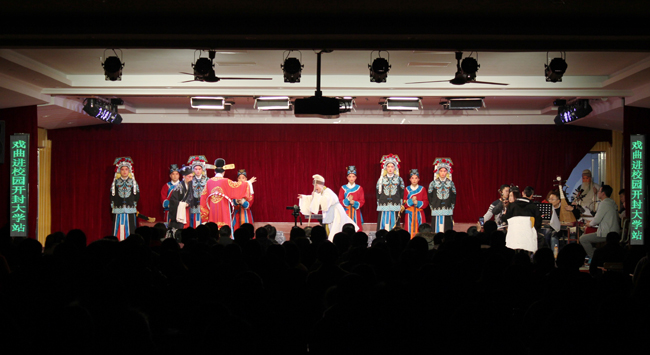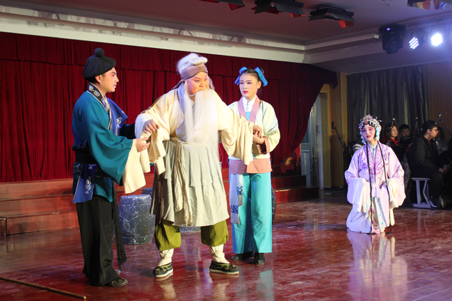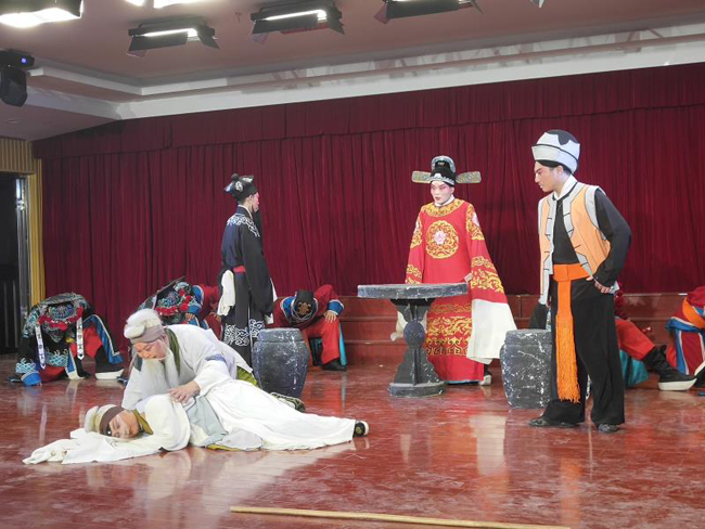 艺术家们为我校师生带来了经典戏剧《清风亭》。中国豫剧领军人物李树建老师亲传弟子李多伟将白发苍苍的张元秀的质朴、善良、耿直和无奈表演得淋漓尽致,那苍凉高亢的唱腔感动了在座的每一个观众。豫剧表演艺术家们深厚的戏曲功底、细腻的表演深深打动现场观众,引起强烈反响。