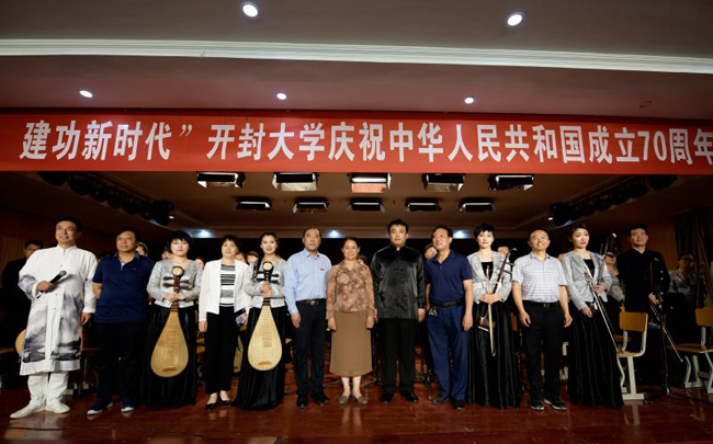 校党委副书记储建新致欢迎辞,他代表全校师生向河南民族乐团来校演出表示热烈欢迎和衷心感谢。他表示,在中华人民共和国成立70周年之际,学校组织体现“民族韵,开大情”的专场音乐会,使广大师生走近大师,感受经典,提升审美情趣和艺术素养,并希望广大青年学子通过高雅艺术作品回顾中华民族的辉煌历史,将爱国精神始终作为我们心中最深厚的民族情感,作为我们薪火相传的精神财富。激励大家永葆创新精神,成为传播、开拓传统文化、高雅艺术的践行者。