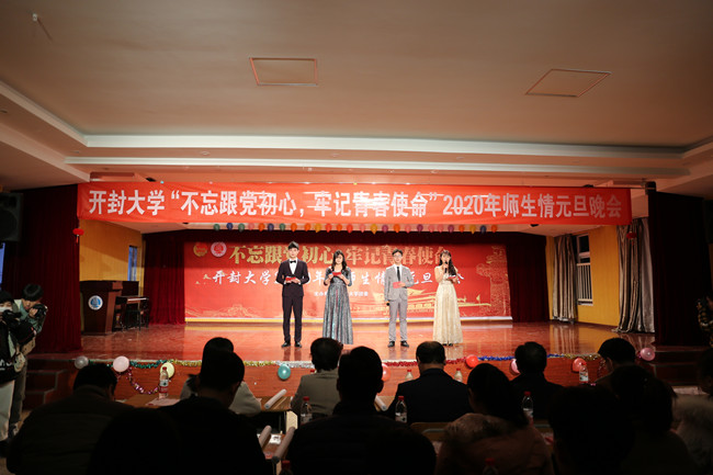 晚会在校学生会合唱团演唱的《强国一代有我在》中拉开帷幕,在古筝的伴奏下,书法社的同学挥毫泼墨写下了“不忘初心、牢记使命”为在场师生送上新春祝福,之后同学们深情的诗朗诵《情系开大40年》、优美的民族舞蹈《茉莉花》、话剧《芳华》等各类节目轮番上映,异彩纷呈,气氛热烈,洋溢着青春活力。老师们登台合唱的《一生有你》将晚会推向高潮。为增加晚会趣味性,出席领导在三轮抽奖环节中与学生互动,给晚会增添了喜庆气氛。晚会在合唱《我和我的祖国》声中落下帷幕。