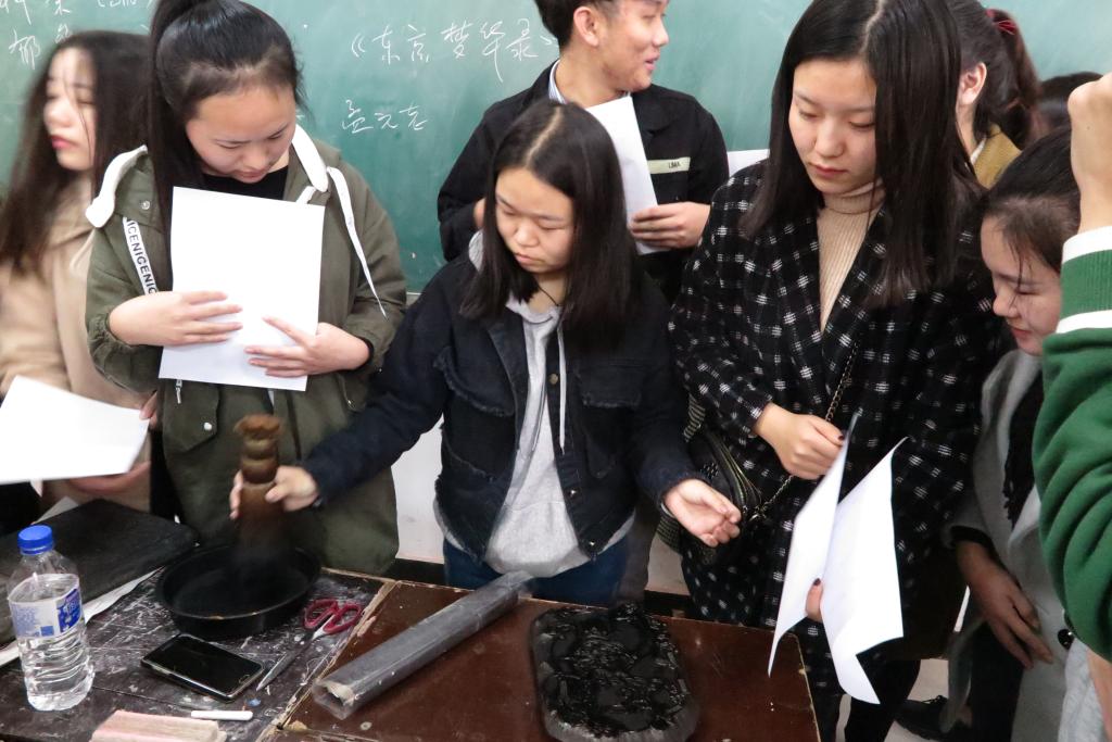 任鹤林先生为同学们介绍了木板年画的起源与发展历程、艺术特点以及表现形式等内容,并结合近期去日本考察的经历进一步阐述了传承与创新的关系。随后任鹤林先生还亲自向学生展示了木板年画的印刷方法,并指导学生动手制作。