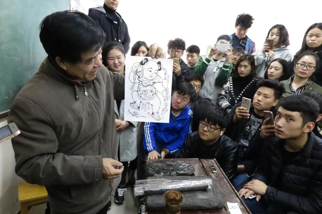 本站讯  为了培养学生的创新实践能力,推动非物质文化遗产的传承与发展,服务开封“文化+”建设,按照宋文化工艺品技能大师工作的培养计划,邀请河南省非物质文化遗产传承人、开封朱仙镇年画艺术馆馆长任鹤林来到艺术设计学院为学生讲学授课。