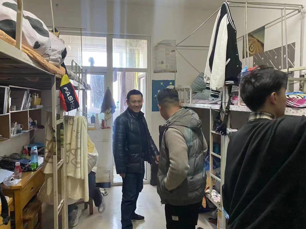 在走访的过程中,同学们积极热情,王龙与同学们进行了亲切的交谈,带来了新学期的问候与鼓励,提醒同学们要提高防范意识,加强体育锻炼,养成良好生活习惯,保持积极乐观的心态,尽快调整状态,投入校园的学习和生活中去。辅导员也对同学们进行了叮嘱,向同学们强调了宿舍安全,对宿舍的卫生提出了建议和指导。
