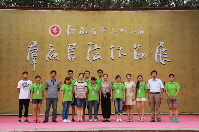 7月5日上午,艺术设计学院11名志愿者来到翰园碑林,为河南省第二十二届群众书法作品展布展服务。