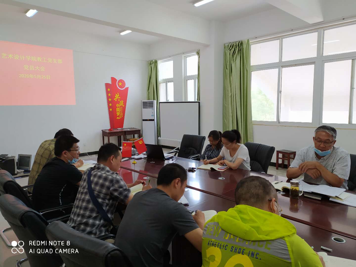 2020年5月25日下午,教工党支部在二楼会议室召开党员大会,党支部书记韩冰主持。