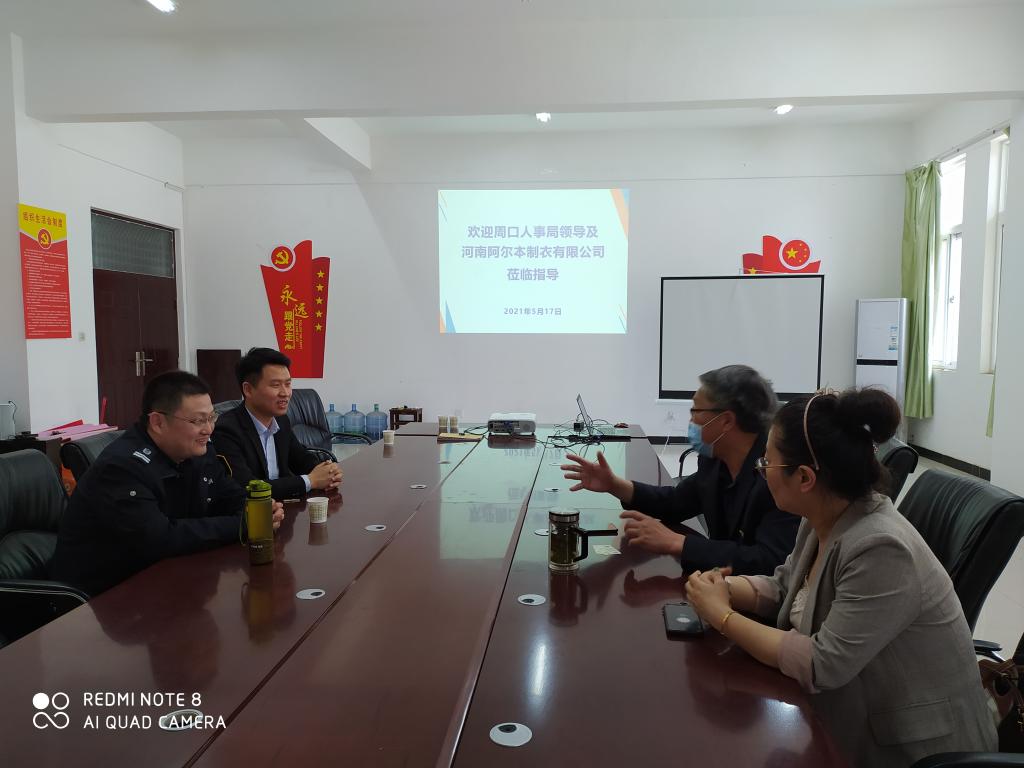 5月17日下午,周口人事局负责人赵琦、河南阿尔本制衣有限公司康曙光一行8人莅临我院指导工作,并与艺术设计学院党总支书记王江然、副院长袁颖举行了座谈。座谈会上,学院党总支书记对周口人事局领导及企业的到来表示热烈的欢迎,并就我院学生实习基地、订单班培养、就业等方面进行了深度的交流。为今后进一步校企合作打下了良好的基础。