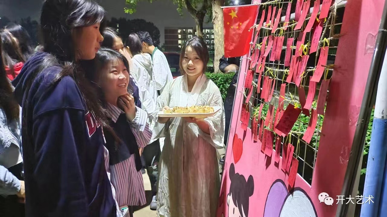 本次活动以“月满中秋”为主题,共分为四个子项,分别为“寄语秋月”祈愿活动、“浓情中秋”猜灯谜活动、“花灯璀璨”diy制作花灯活动、“月韵飘香”品尝月饼等,将“月满人团圆”的浓厚情感融入其中。活动现场节日氛围浓厚,同学们身着传统汉服,或是唐制、明制、魏晋风等各种型制服装,配以合适的妆造发型,手提花灯,展示了中华衣冠文化之美。同学们通过此次活动寄托了对家乡亲人的思念,在花灯和祈愿卡上写下了自己的小小心愿,释放出心理压力。虽身在异乡,也让同学们在学校感受到节日温暖,同时增进了彼此之间的感情。