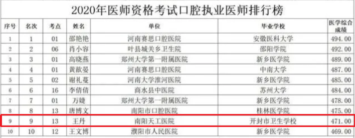 新年伊始,喜讯传来!日前,为表彰优秀、鼓励更多学子通过医师资格考试,河南省卫健委所属医药卫生报对2020年河南考区分类别考试成绩前10名进行了公布。