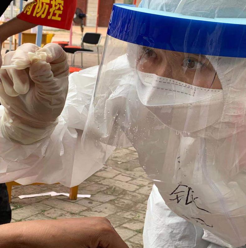 疫情突起,义无反顾,招之则战,战必有我。当看到所在郭屯社区发出征集核酸检测志愿者的通知后,我校解剖组教师刘银凤第一时间报名支援,积极协助社区开展核酸检测工作。