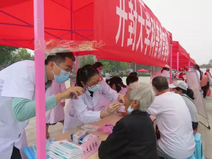 启动仪式后,不断有群众来到医学部展位进行疾病相关问题咨询,活动现场气氛热烈。医学部口腔专家马惠萍、临床专家樊瑞敏、中心实训室负责人王晓明等工作人员现场对群众进行专业的口腔检查、身体检查、血压测量等操作,耐心对群众提出的问题答疑解惑,并普及相关健康教育知识。接受健康科普的群众对工作人员热情的服务态度、专业的知识解答给予高度认可和一致好评。
