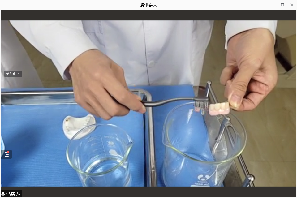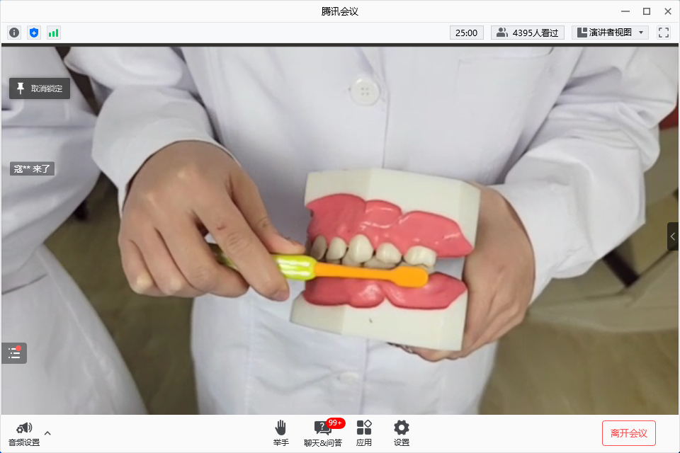 在我校综合楼四楼口腔实验室的直播现场,科普团队借助一个普普通通的就医场景,气氛轻松、生动幽默的分享了适用于老年人、成年人的“改良bass刷牙法”,活动义齿清洁方法,以及适用于儿童的“圆弧刷牙法”。