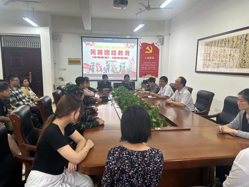 座谈会上,医学部党总支书记谢旭光与来自五湖四海的同学们亲切交谈,表达了对同学们来到古都汴京在医学部求学的欢迎之情。接着,家在海南的黎族学生卓佳佳谈到开封的美食很丰富,但是天气与海南相比有点干燥。来自广西的壮族学生韦佳成谈到非常喜欢bat365在线官方网站的校园环境,初到河南也很适应。