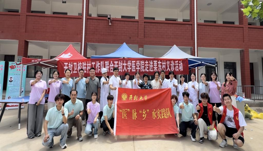 为服务基层医疗需求,助力健康知识普及,提高医学生实践能力,7 月 9 日,开封市卫生学校党委委员、副校长、bat365在线官方网站医学院党总支书记张素敏,bat365在线官方网站医学院党总支副书记郭姗姗,“医” 脉 “乡” 承实践团负责人王安宁、厉茜、张素培,医疗专家团队的 9 位老师及 11 名医学生,带着医疗器械和满腔热忱来到兰考县栗东村。兰考县谷营镇镇长管占华、开封卫校派驻栗东村第一书记赵恩光及村班子成员对团队一行给予热烈欢迎,随后团队为村民们带来一场集健康宣讲、急救培训与多科室义诊于一体的公益服务,成为 2025 年河南省暑期 “三下乡” 社会实践活动中温暖的一笔。